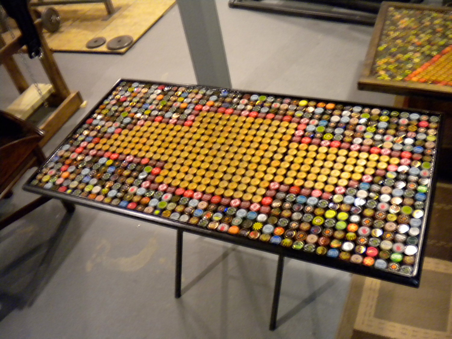 I sourced a table from well known furniture company and bought some bottle caps from ebay.